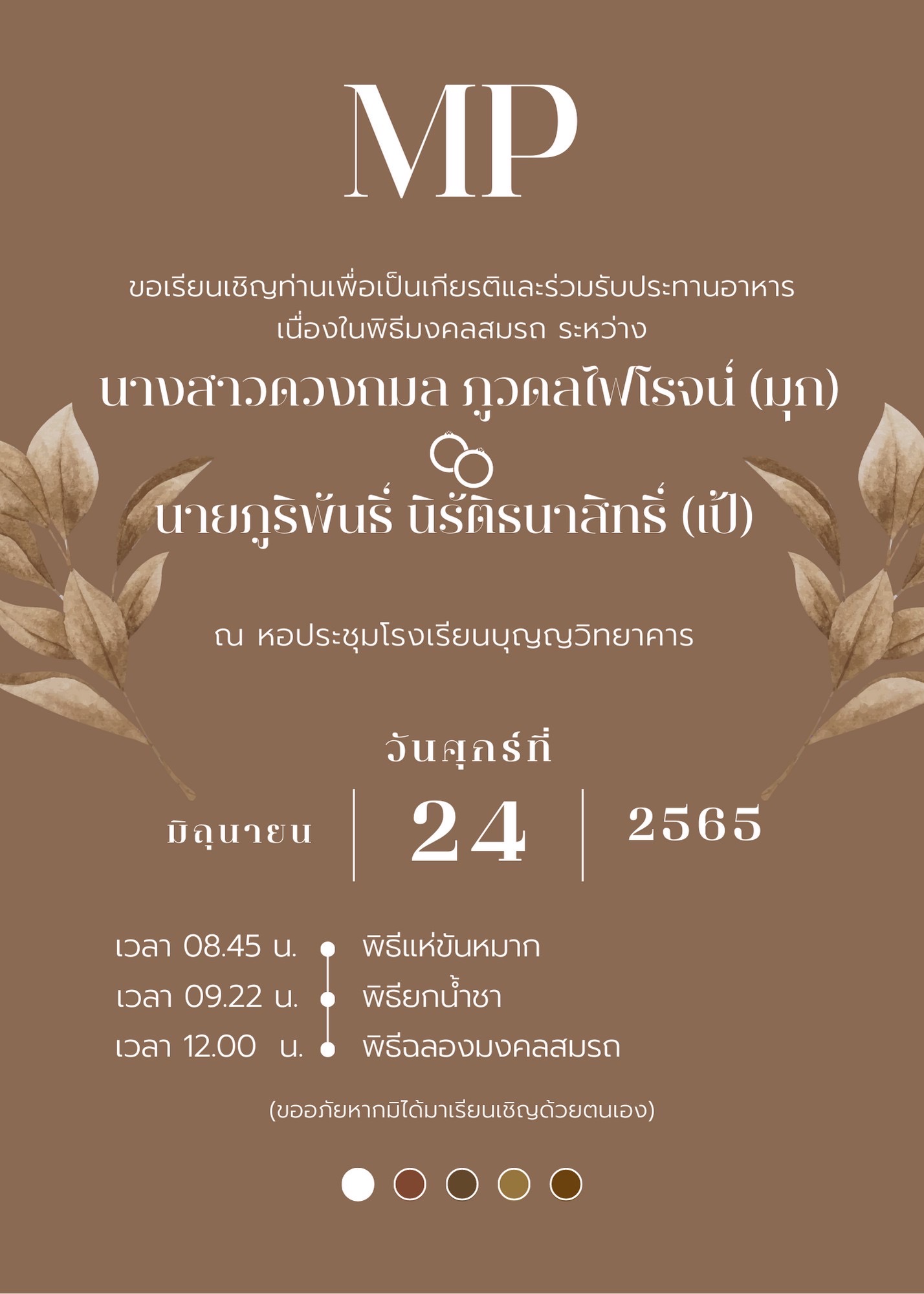 ณ หอประชุมโรงเรียนบุญญวิทยาคาร