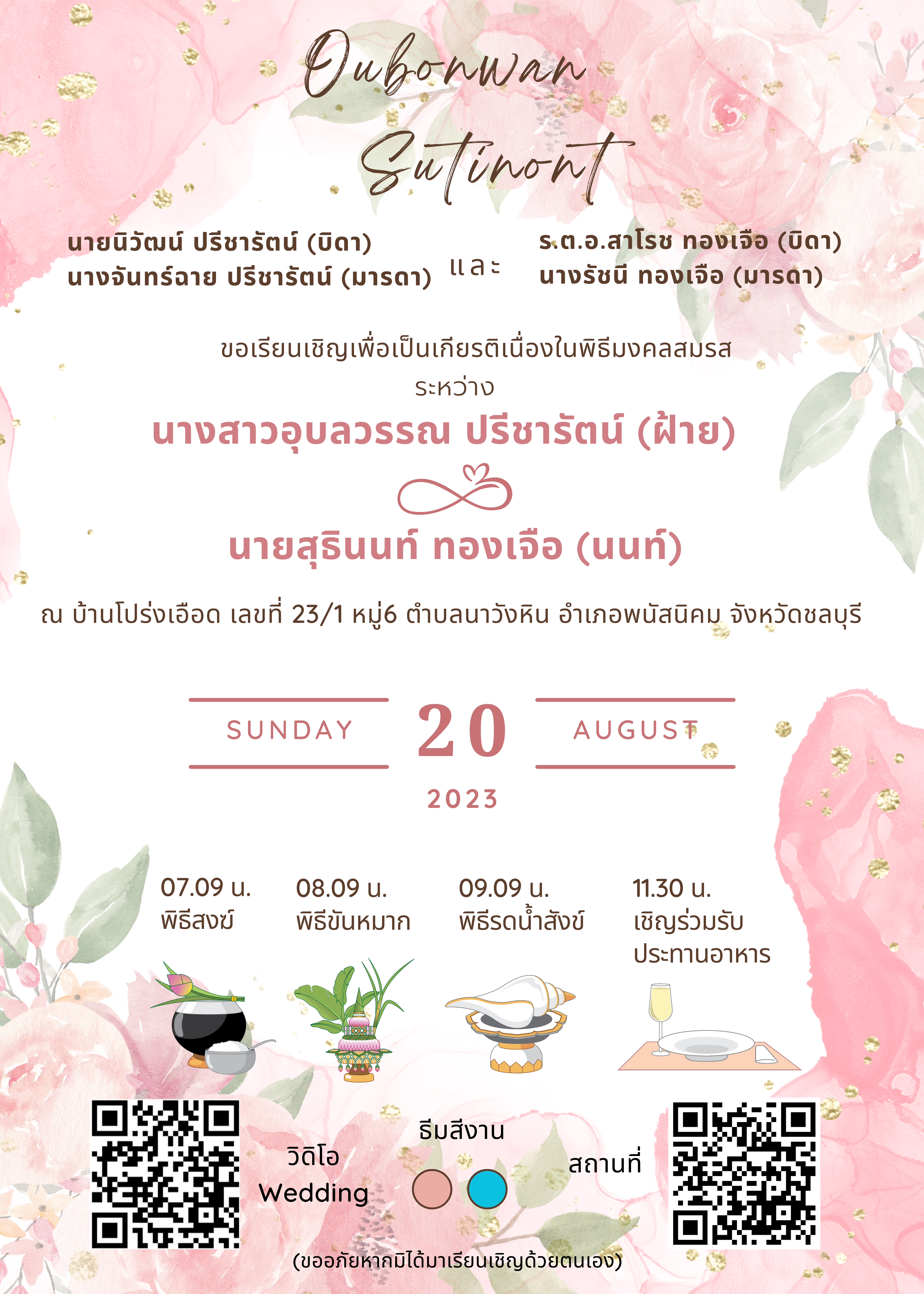 มีความยินดีเรียนเชิญท่านเพื่อเป็นเกียรติเนื่องในพิธีมงคลสมรส